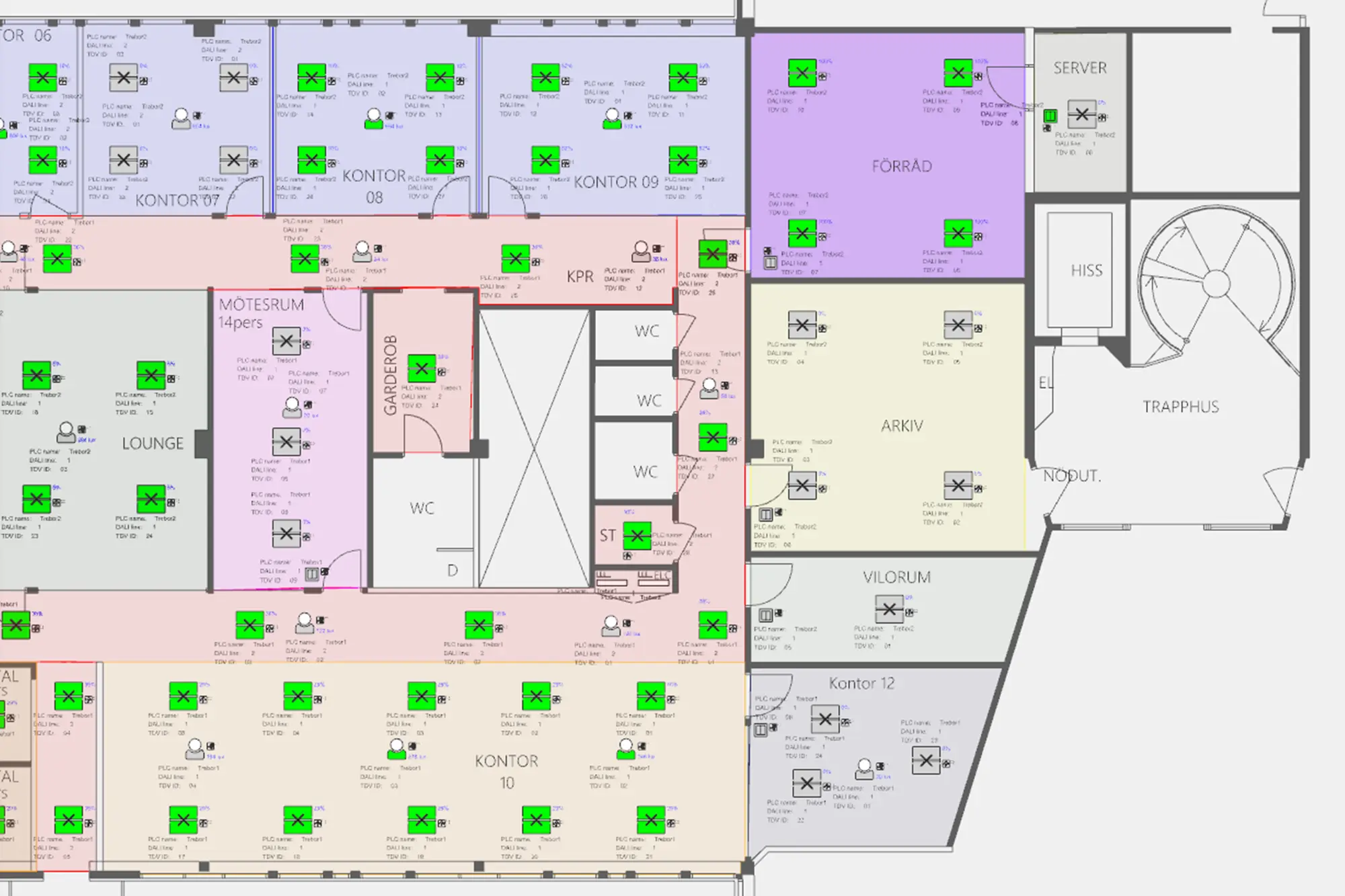 Övervakning är en central del i automatiserad belysning. Alla komponenter i en TDV-anläggning övervakas och kan styras manuellt.